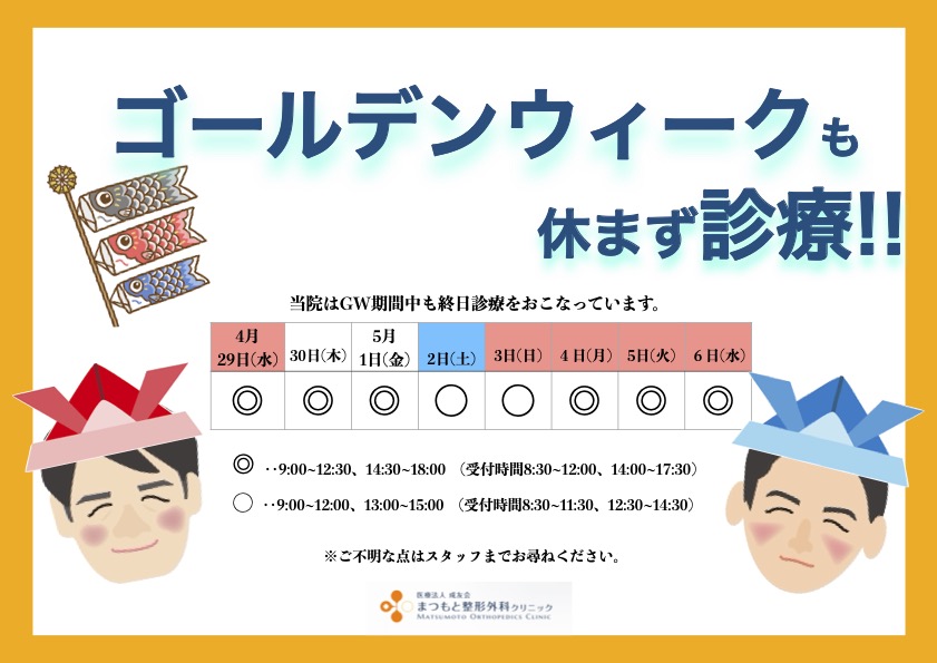 【GW期間中における診療日のお知らせ】